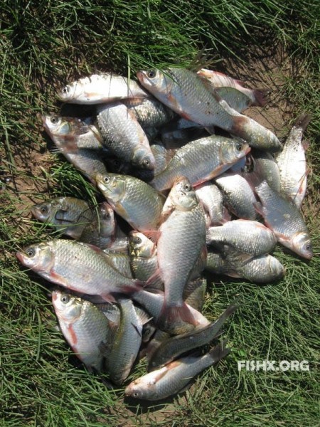Собрался наловить живца для хищника на деревенском пруду, но клевали одни караси, причём неплохие.